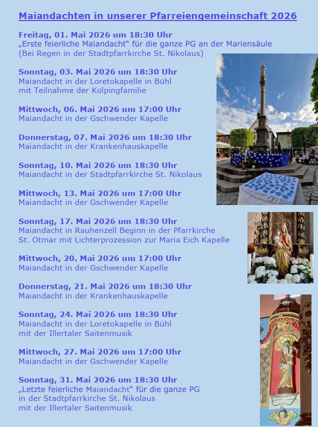 Am ersten Samstag im Monat gedenken wir allen im Vormonat Verstorbenen unserer PG. Besondere Einladung