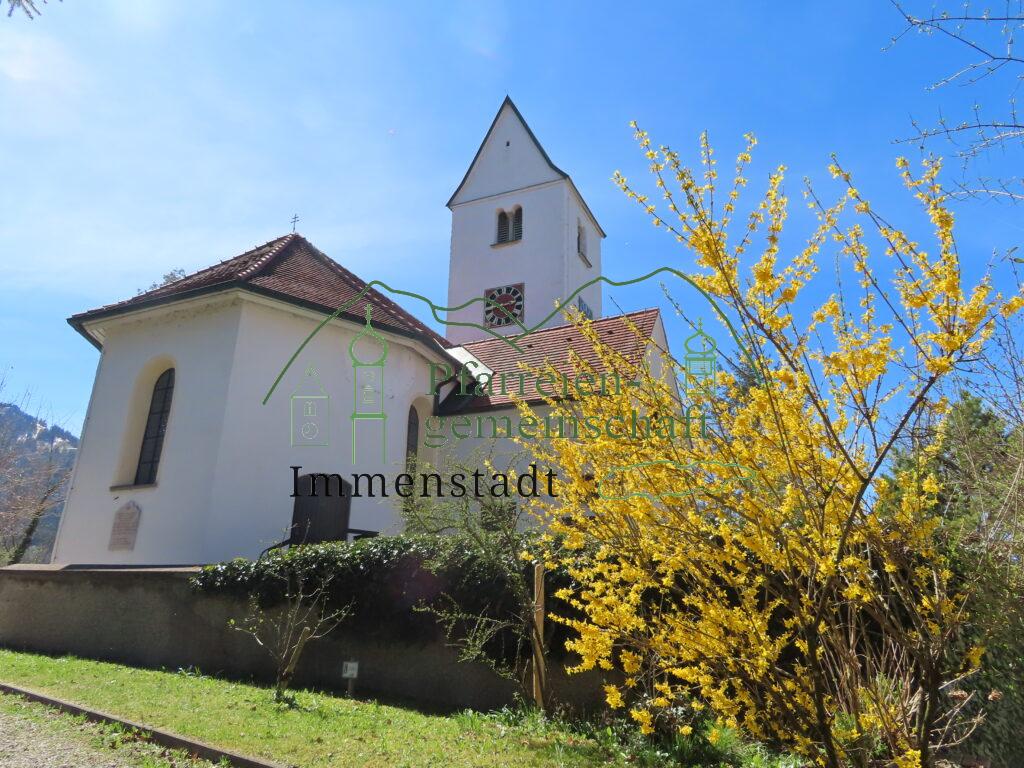 Geschichtliche Daten: Die generelle Geschichte der Kirche geht in die Frühzeit der Christianisierung des Alpgaus zurück, als Mönche mit der Heidenmission beauftragt waren. Der spätromanische Westturm, wie die Umfassungsmauern des Schiffs gehen auf einen Bau des 13. Jahrhunderts zurück, der Altarraum ins 15. Jahrhundert. 1693/94 war ein großer Kirchenumbau mit Vergrößerung des Langhauses und neuer Ausstattung.